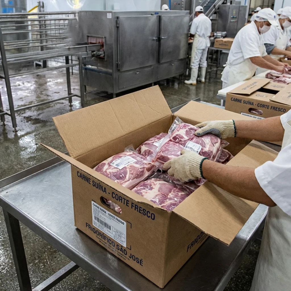 Caixas de Papelão para Carne Bovina in Natura – Caixas para Cortes Suínos – Embalagens para Aves e Frango Congelado – Caixas para Bacon – Caixas para Salsicha – Caixas para Linguiça – Embalagens para Charcutaria – Caixas para Presunto e Paleta – Caixas para Mortadela – Caixas para Defumados e Curados – Caixas Onduladas para Transporte – Embalagens para Miúdos – Caixas para Acondicionamento de Peles – Caixas de Papelão Resistentes à Umidade – Caixas para Exportação de Carnes (Padrão Internacional) – Embalagens com Fundo Automático – Caixas Personalizadas com Logomarca – Caixas com Berço Interno (para cortes específicos) – Caixas para Freezer e Câmara Fria – Soluções em Papelão Ondulado de Parede Simples – Soluções em Papelão Ondulado de Parede Dupla – Caixas para Cortes Padronizados – Embalagens para Distribuição e Atacado – Caixas para Congelamento e Estocagem – Caixas para Processamento de Alimentos