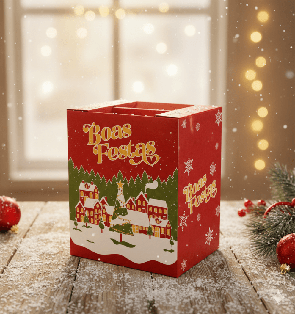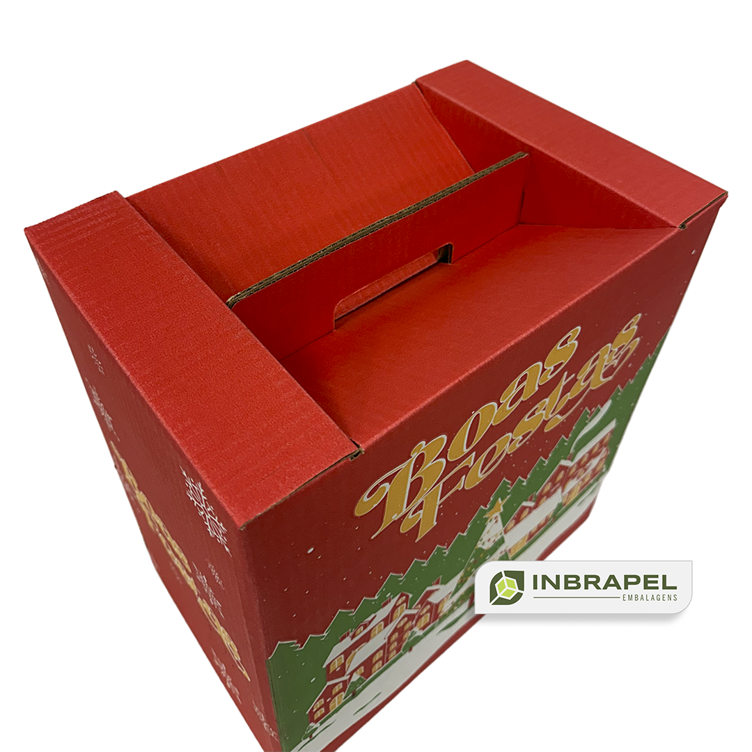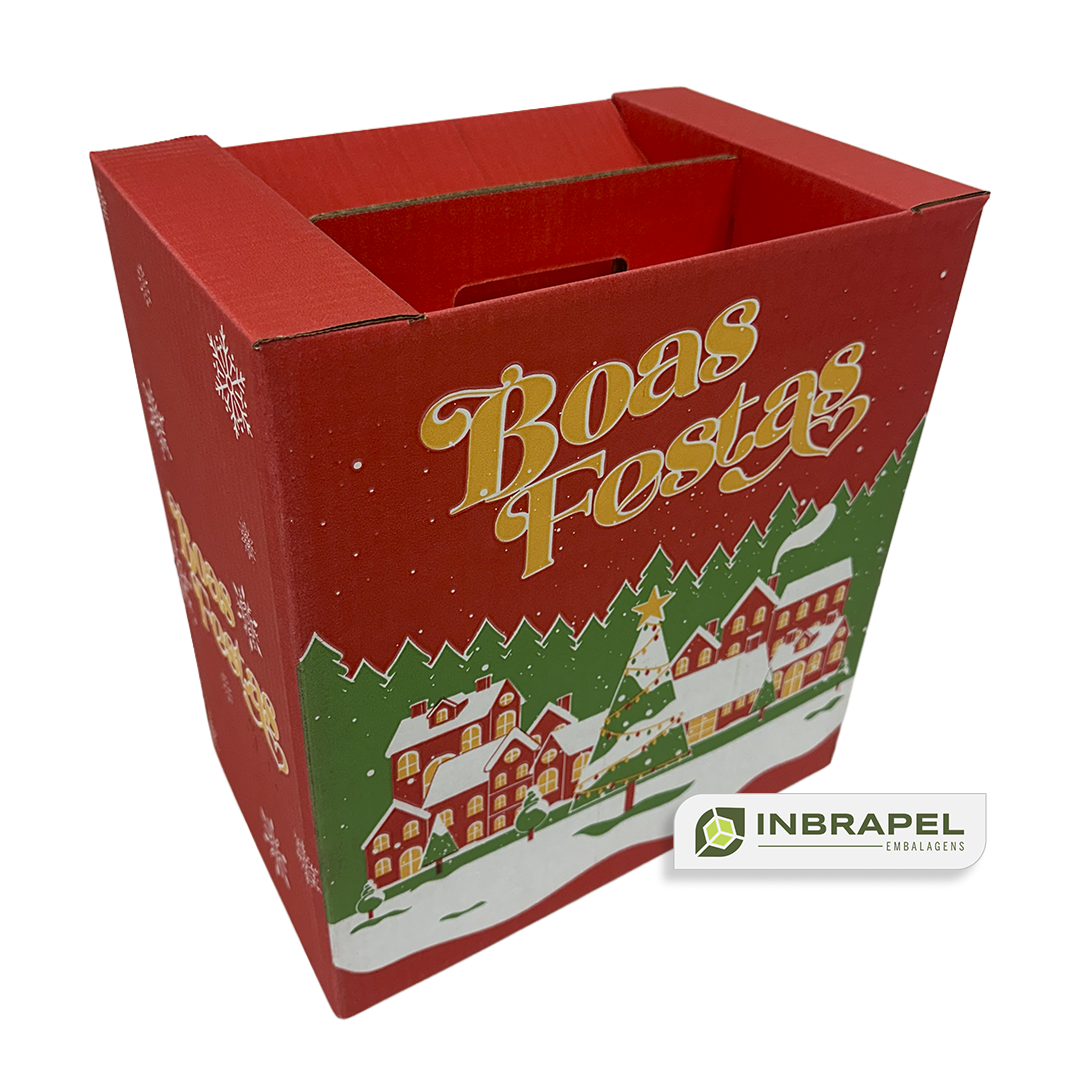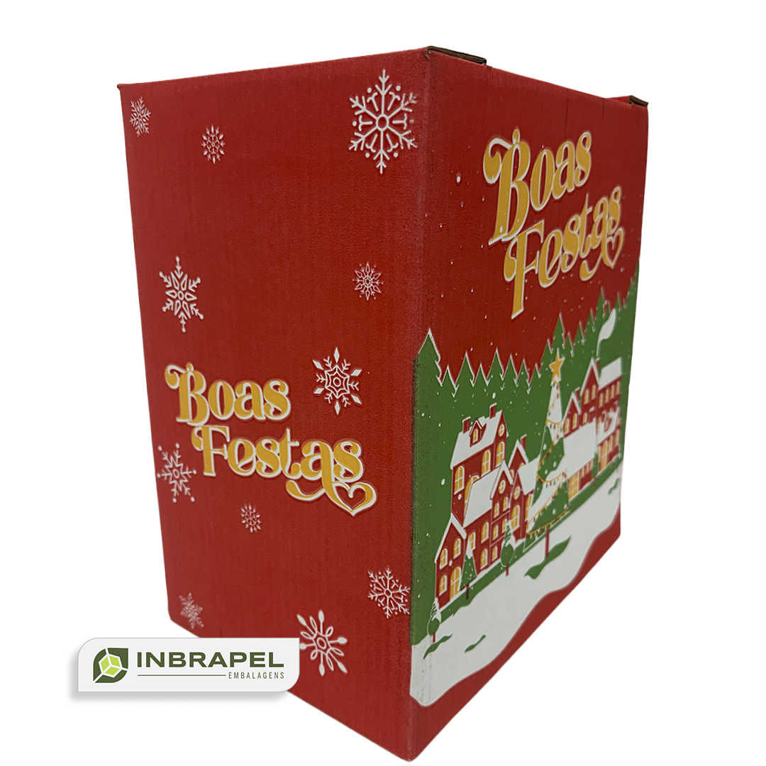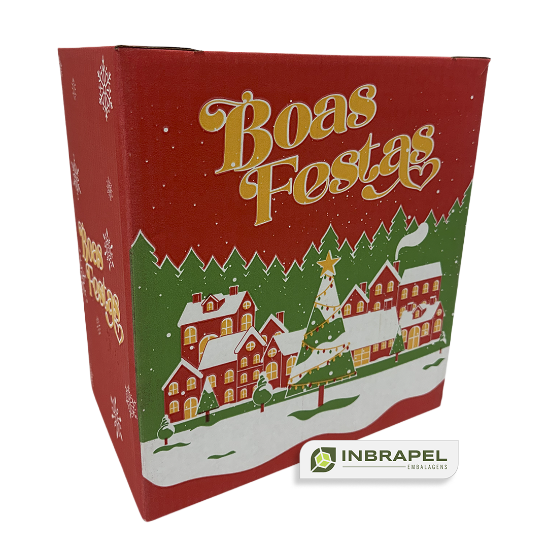 A embalagem clássica para celebrar e presentear. Nossa caixa para Cesta de Natal possui medida padrão de 315x200x340 mm, sendo fácil de estocar, transportar e totalmente empilhável.
